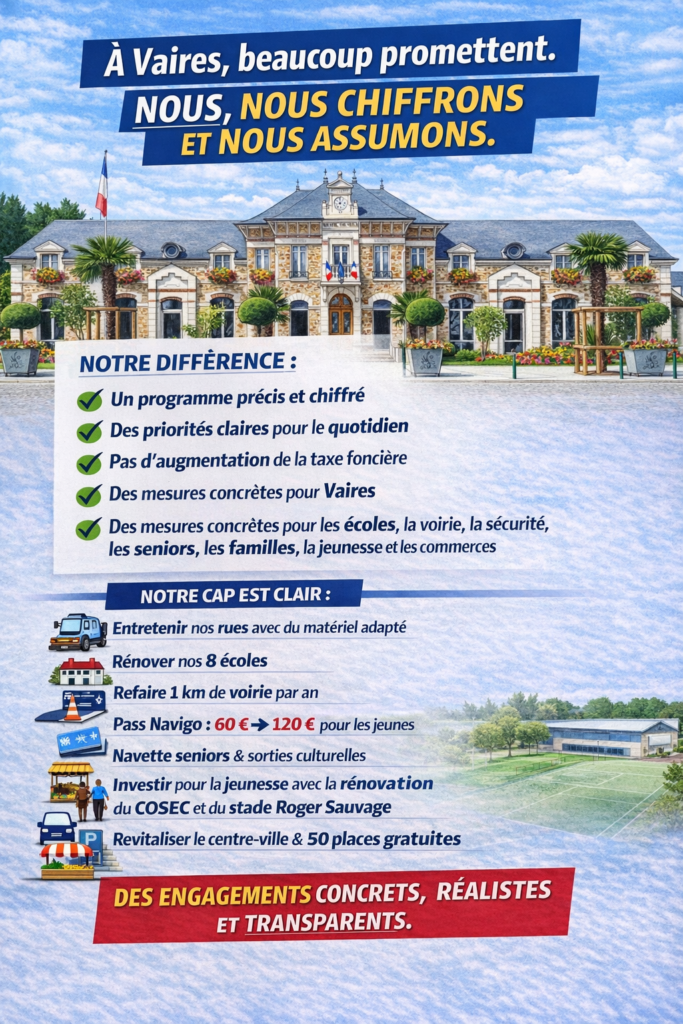 🗞️ Diffusion du deuxième tract : pour une gestion responsable et transparente à Vaires-sur-Marne Nous poursuivons notre démarche d’information et de transparence avec la diffusion de notre deuxième tract, actuellement en cours de distribution à Vaires-sur-Marne. À l’approche des élections