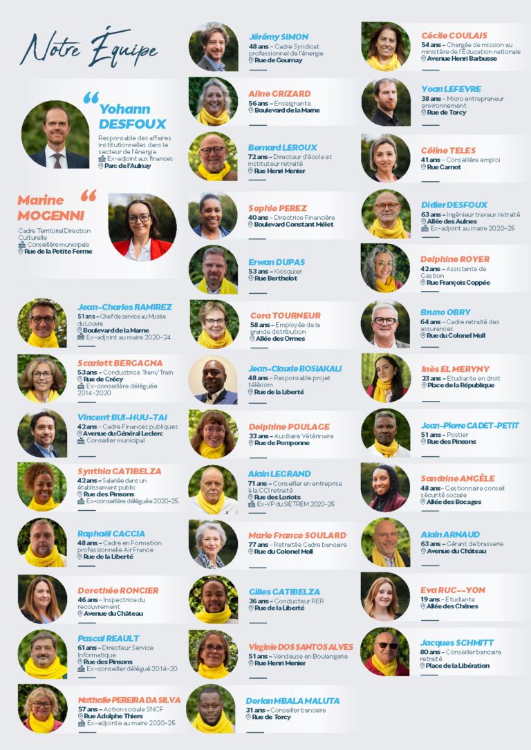 Autour de Yohann Desfoux et Marine Mogenni, c’est une équipe unie, libre, engagée et profondément ancrée dans la vie locale qui se présente devant vous.