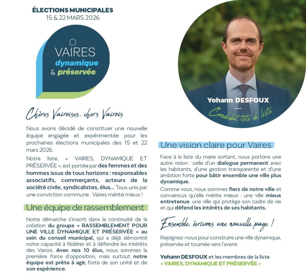 🗞️ Diffusion du Premier tract : une nouvelle étape pour Vaires, dynamique & préservée Nous avons engagé, ces derniers jours, la diffusion de notre premier tract auprès des habitantes et habitants de Vaires-sur-Marne. Ce document marque une étape importante dans la démarche que nous avons lancée en vue des élections municipales des 15 et 22 […]
